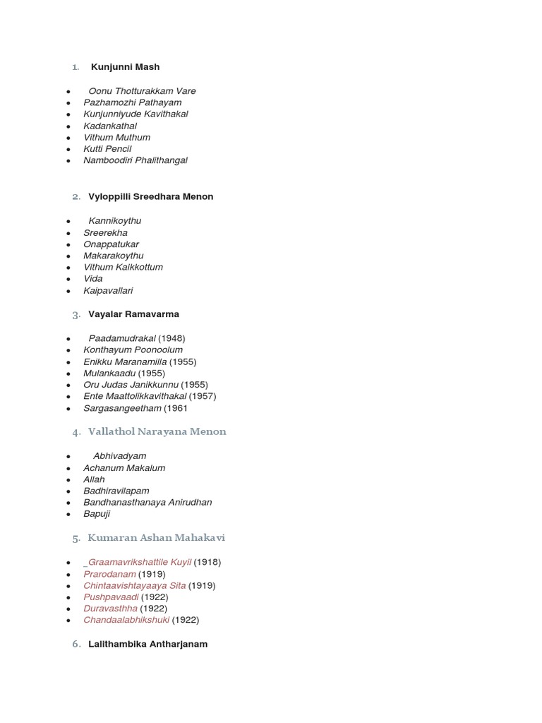 Malyalam Kavikalum Kavithakalluym Indian Literature Kerala